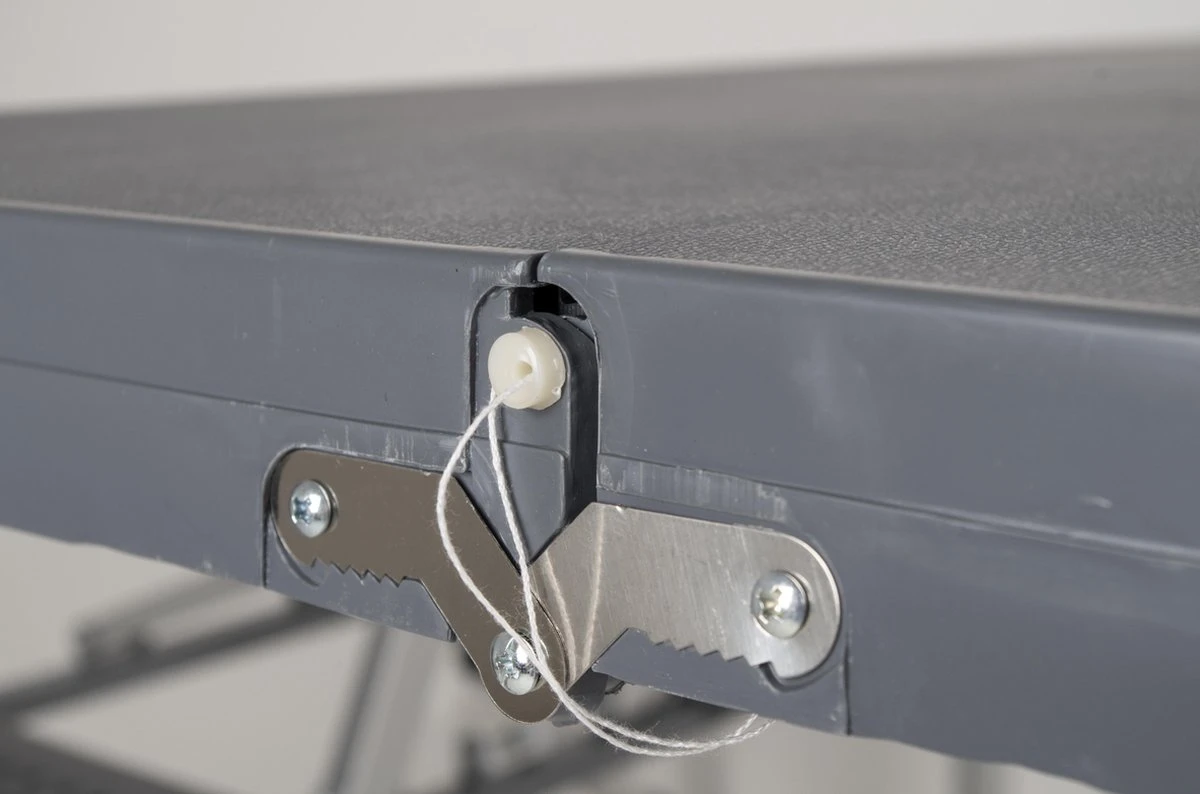 - De tafel beschikt over een stevig metalen frame met ABS tafelblad.