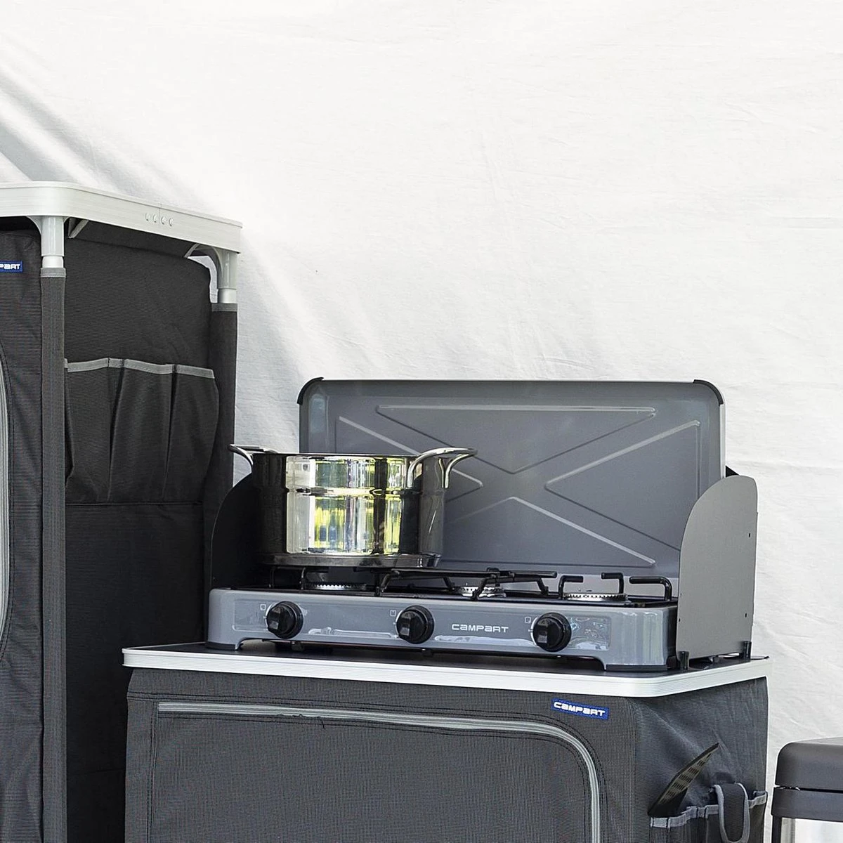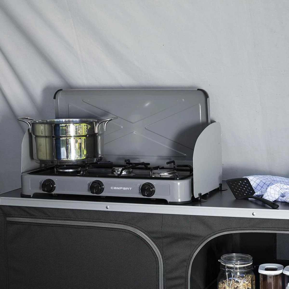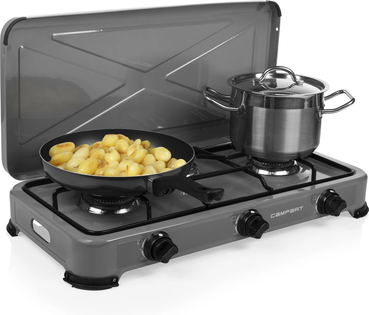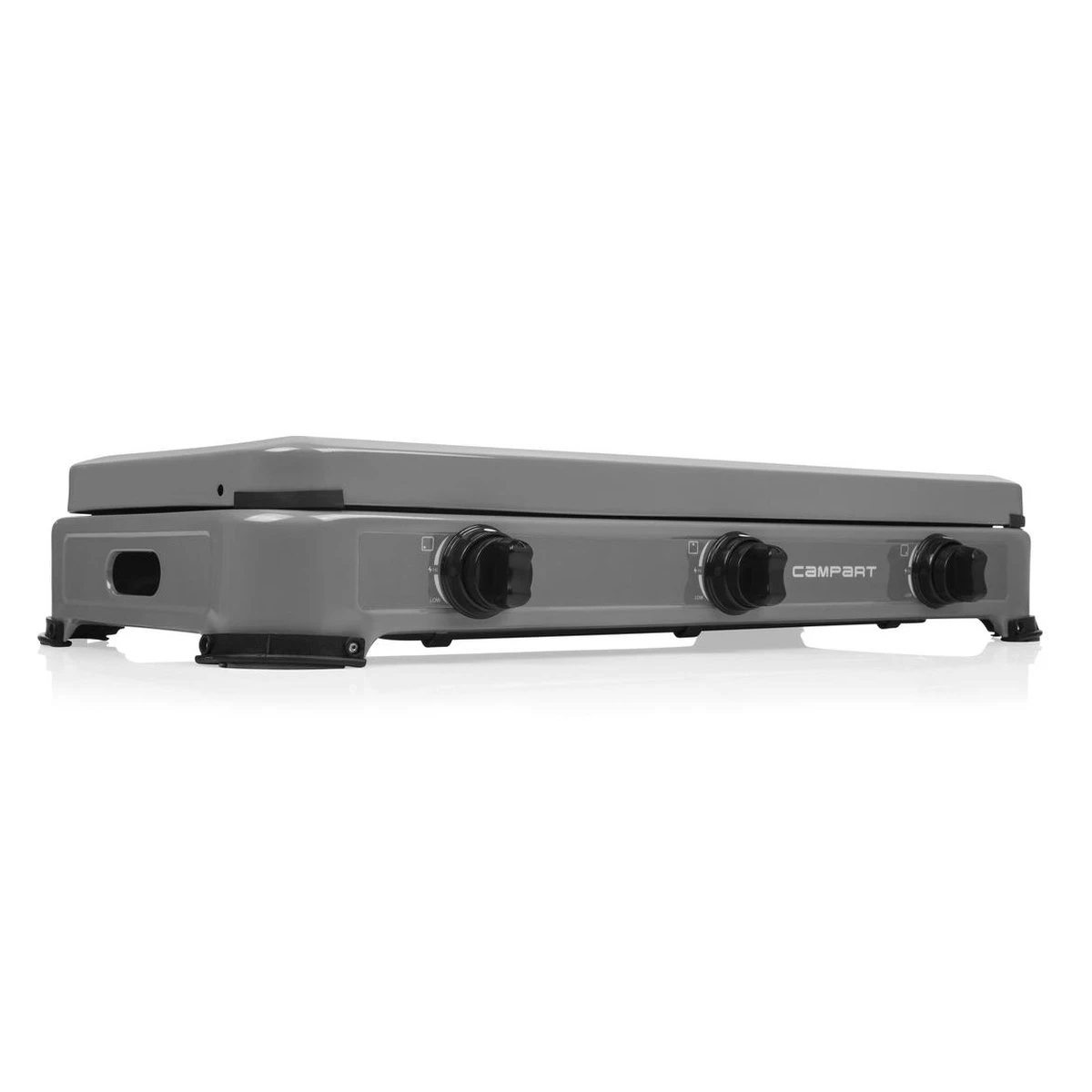 Campart Campingkooktoestel GA-8403 – Gas Kooktoestel 3 Pits – Kookplaat Kamperen – Grijs