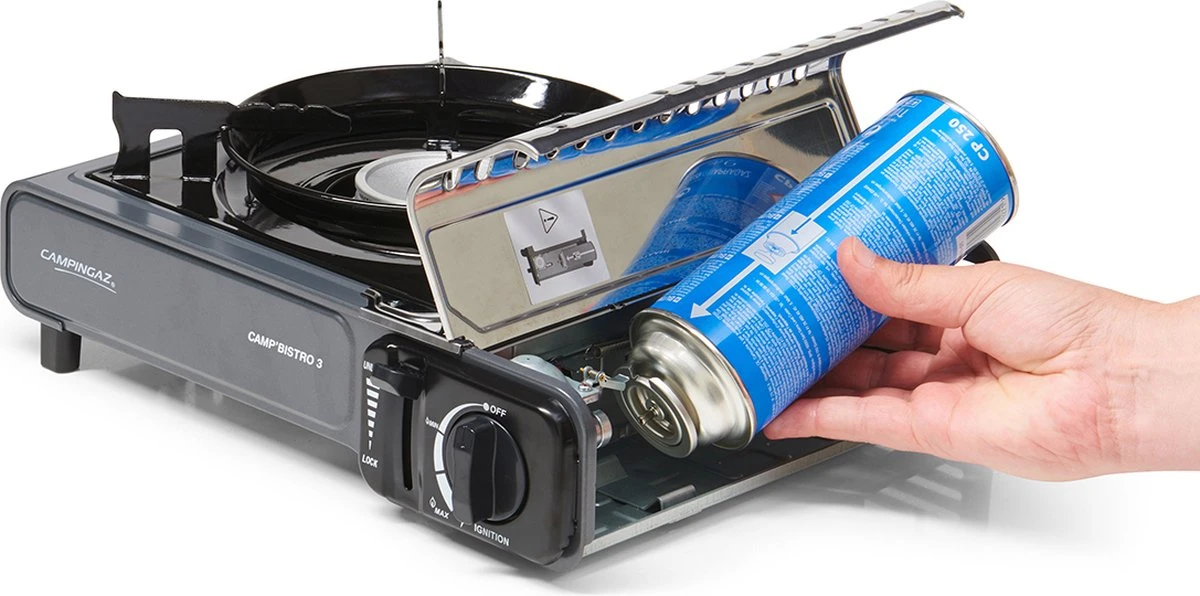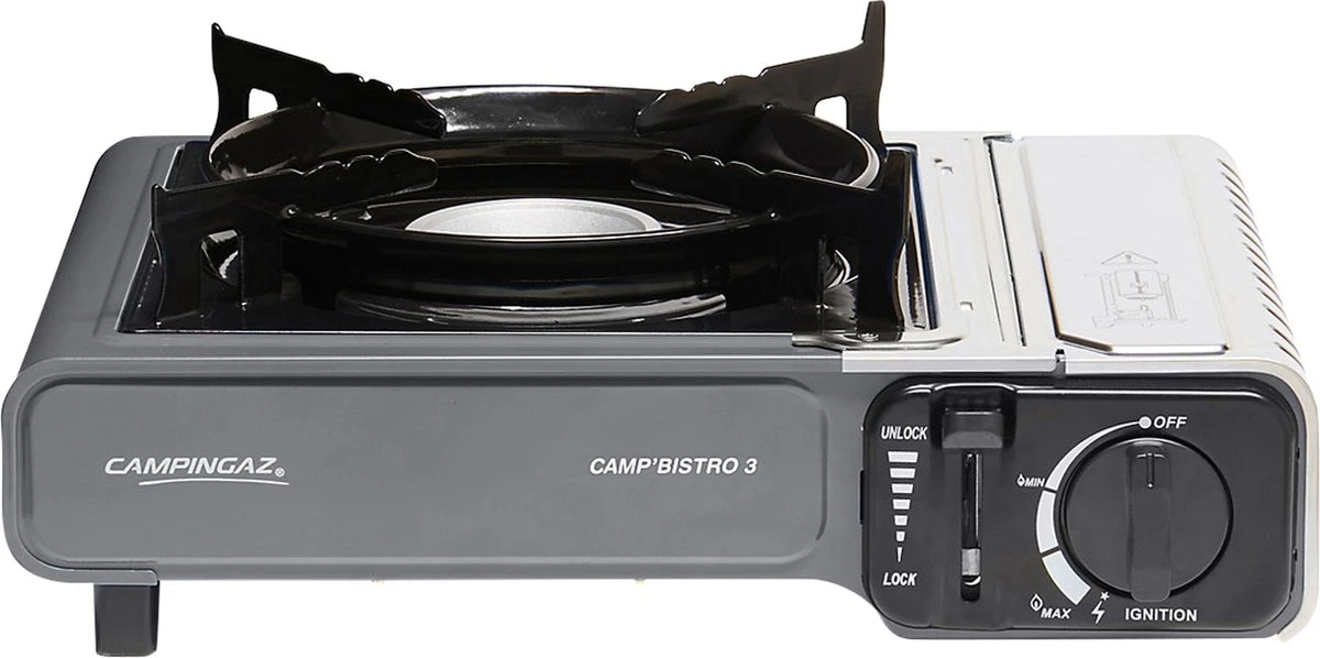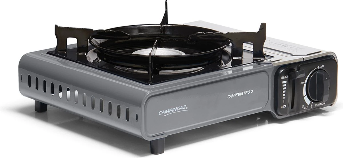 De Campingaz Camp Bistro 3 is een compact camping kooktoestel die je gemakkelijk mee kunt nemen naar de camping en waar je verschillende maaltijden op kan bereiden.