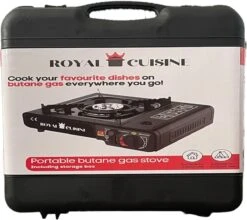 Dit draagbare model camping fornuis is een compact kooktoestel dat ideaal is voor op reis. De één pits brander heeft een vermogen van 2500 Watt en met de handige elektrische piezo ontsteking geeft het aansteken van de brander geen problemen. Het gasstel zit in een robuuste draagkoffer en maakt hem zo de perfecte reisgezel voor uitstapjes en kamperen. Het kooktoestel heeft een ingebouwd compartiment voor een gas cartridge, deze is niet inbegrepen.