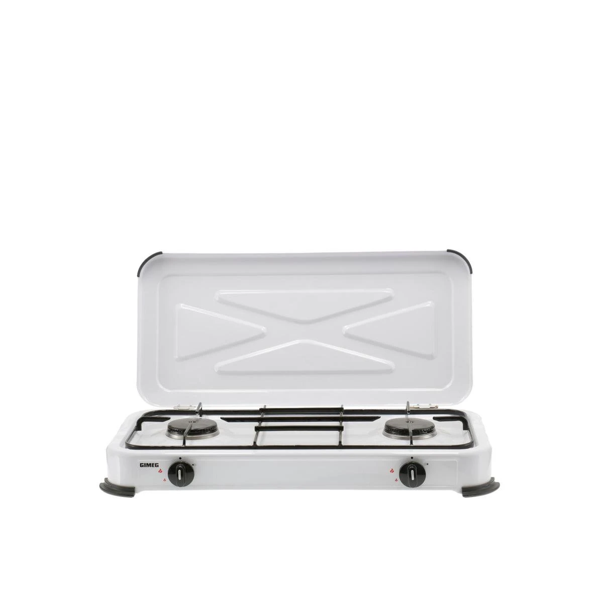 Het Gimeg kooktoestel is voorzien van twee extra sterke 2,2 kw branders voor een optimale kookervaring. Het kooktoestel is voorzien van een stabiele pannendrager die ruimte biedt aan twee grote pannen. Dankzij de ingebouwde elektronische batterijontsteking ontsteek je het toestel veilig en eenvoudig. Nog meer veiligheid wordt geboden door de antislipvoetjes aan de onderkant van het kooktoestel. Het toestel blijft stabiel op zijn plek staan.