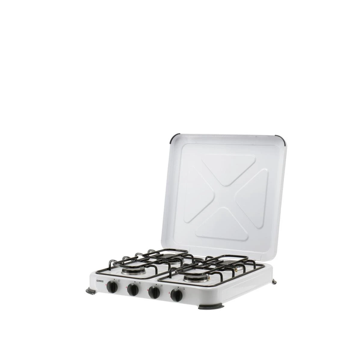 Met de kooktoestellen van Gimeg is koken op de camping net zo leuk en eenvoudig als thuis. Dit vierpits kooktoestel biedt ruimte aan meerdere pannen tegelijkertijd. Wat zet jij op tafel?