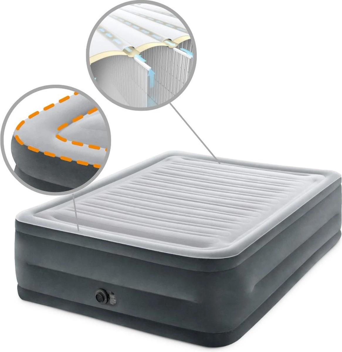 Intex Luchtbed – 2-Persoons – 152 X 203 X 33 Cm – Grijs – Met Ingebouwde Pomp, Hoeslaken Antraciet En Reparatieset