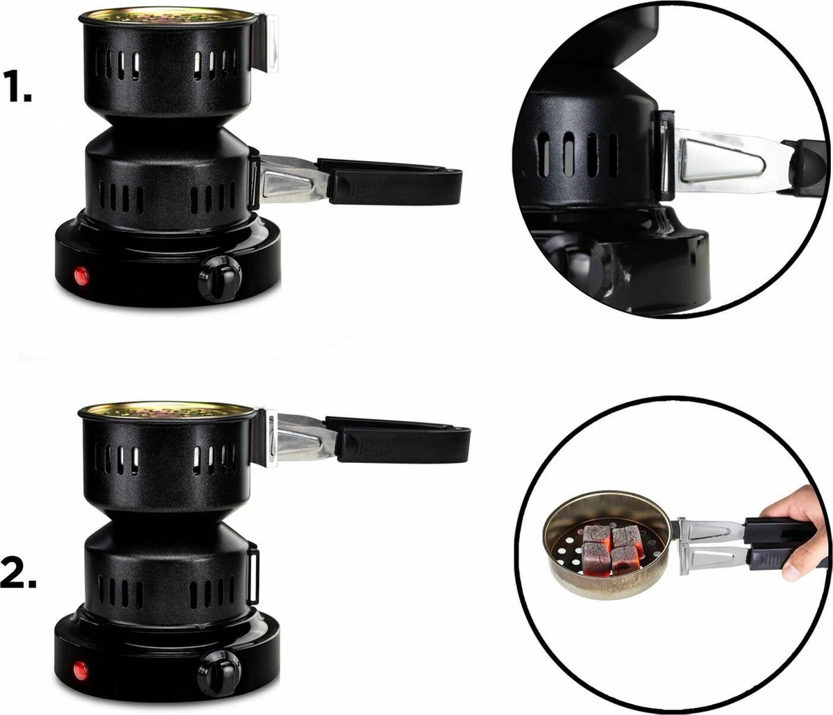 Binnen 3-4 minuten gloeit je houtskool, kooltjes (hiervoor is een extra houtskoolzeef aanwezig) Het afneembare handvat kan zowel de houtskoolkom als de gehele aansteker dragen en kan als tang worden gebruikt.