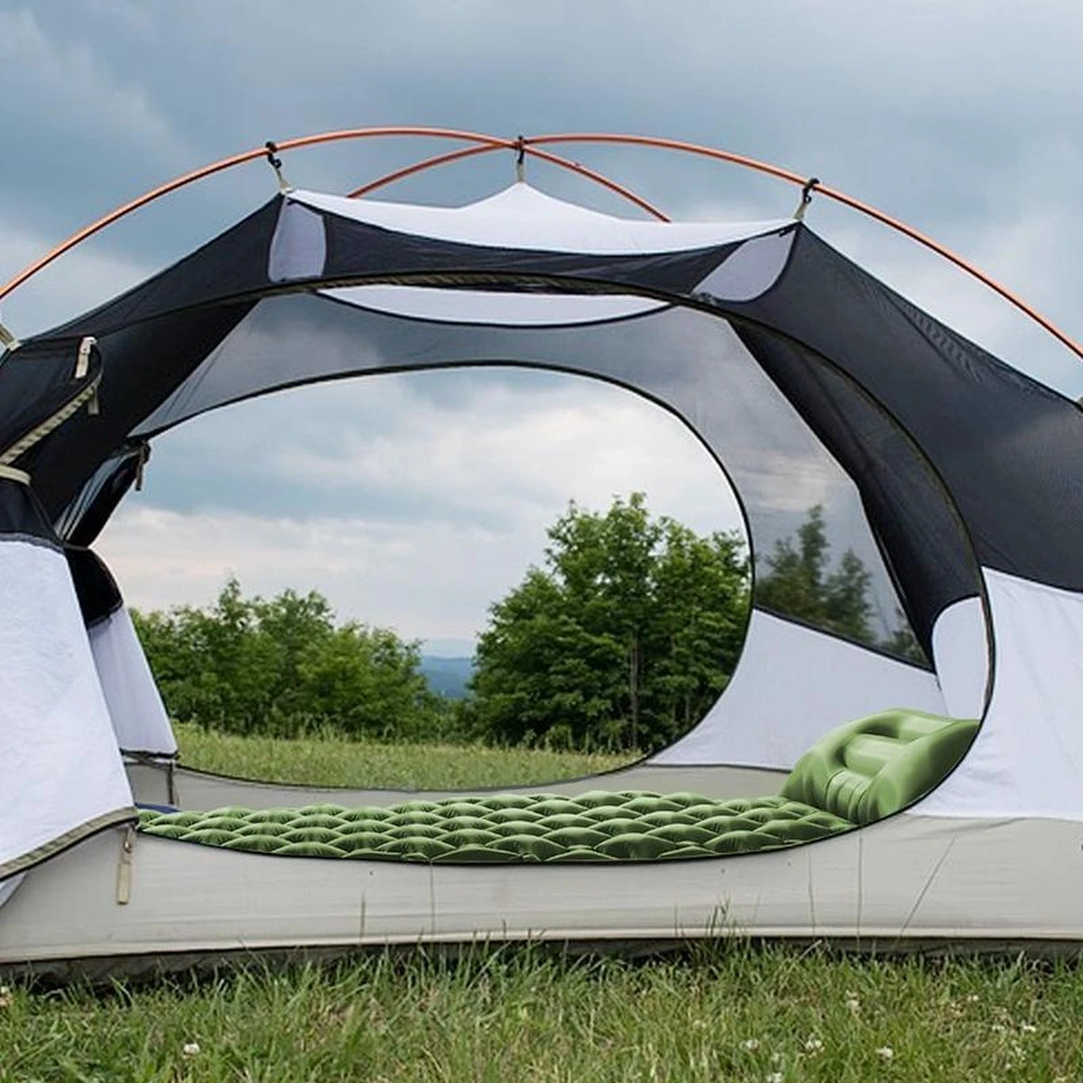 Een comfortabel en compact slaapmatje die makkelijk in je rugzak past? Blaas de TRVLMORE slaapmat in 2 minuten op met de geïntegreerde voetpomp en kruip in bed! Heerlijk comfortabel en gemaakt van zacht en stevig 40D nylon. De slaapmat is 6 cm dik en is afgewerkt met een vochtbestendige TPU coating. Het hoofdkussen heeft een ideale hoogte voor je nek. Het honingraat ontwerp houdt je lichaamswarmte goed vast. Zo kun je er de volgende dag weer helemaal tegenaan!