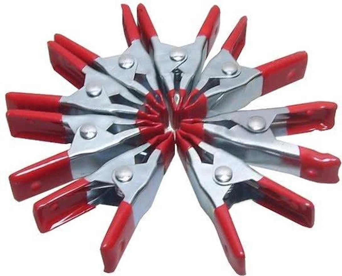 12 zeilklemmen waarmee je gemakkelijk een doek aan elkaar vast houd, gelijmde producten tegen elkaar houd etc.